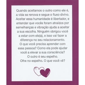 Oráculo do Amor Sistêmico O Oráculo do amor sistêmico foi feito para você, que deseja entender um pouco mais sobre a sua vida amorosa e os seus relacionamentos, de forma sistêmica. Todos nós estamos conectados aos nossos pais e antepassados, e em determinados momentos repetimos padrões, sem ter consciência disso. Este livro-caixinha® lhe trará clareza sobre a sua dinâmica familiar e a reverberação dela em sua vida amorosa e nos tipos de parceiros(as) que você atrai. Se deseja entender suas relações, use e abuse desta obra para buscar suas respostas. Ela pode ser utilizada para consultas pessoais, dinâmicas de grupo, em atendimento por terapeutas, consteladores, psicólogos e todas as pessoas que queiram usá-la no dia a dia.