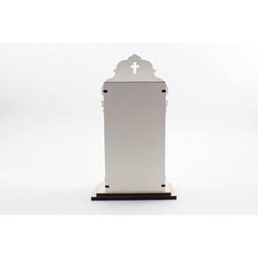 Oratório Capela com Janela Branco Mdf 27 cm Oratório capela, ideal para imagens de até 15 cm. Dimensões: altura: 26,5 cm - Largura: 17,5 cm - Profundidade: 12 cm - Peso: 560g Dimensões aproximadas do produto. Produto pintado a mão, podendo sofrer variações de cores. Marca: Não Informado