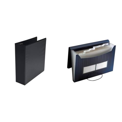 Organize seu escritório ou espaço de estudo de forma eficiente com o fichário Casafoyer de polipropileno D-Ring View e o kit combinado de arquivos expansíveis de poliéster. O fichário D-Ring de 3 polegadas comporta até 725 folhas, com uma cobertura antirreflexo para fácil personalização e dois bolsos profundos para armazenamento adicional. Complementando isso, o arquivo expansível de poliéster de 7 bolsos oferece excelente armazenamento para documentos em tamanho carta, protegido com um fecho elástico. Ambos os itens oferecem durabilidade e funcionalidade, tornando-os ideais para uso escolar, no escritório ou em casa.