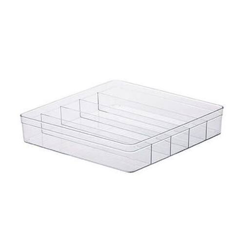 Organizador 5 Divisórias Prático Para Maquiagem O organizador acrílico da Paramount é perfeito e prático para organizar pequenos objetos como alguns itens de maquiagem, itens de costura, bijuterias, itens de papelaria como lápis e clips, pequenas peças de ferramentas como parafusos e muito mais. A transparência permite encontrar os objetos com facilidade. Dê adeus a bagunça e perda de objetos pequenos. Deixe tudo organizado Tamanho: 36,5 X 36,5 X 7,5 cm Peso aproximado: 800g Cor: transparente Material: acrílico OBS: Não acompanha produtos para colocar no organizador, imagens com produtos é apenas ilustrativa, para demonstrar o que dá para organizar. E não usar esponja de aço na limpeza. Ean: 7898943569929