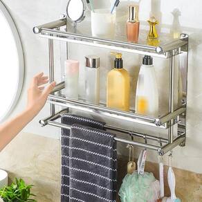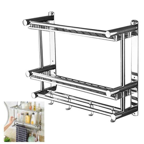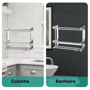 Organize a sua casa com esse organizador multifuncional, ele possui duas prateleiras, quatro ganchos, perfeito para colocar toalhas, panos de prato ou utensilios de cozinha.