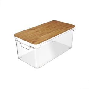 Organizador De Armario Clear Com Tampa De Bambu 15,5X30,5 Ou