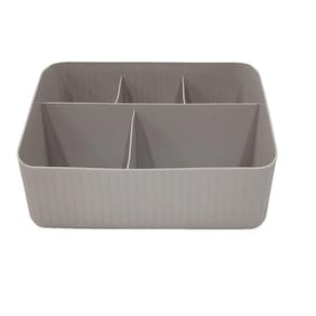 O Organizador Com Divisorias possui 5 Compartimentos, ele é a solução perfeita para manter seu espaço de trabalho ou área de maquiagem organizado e funcional. Com um design elegante e moderno, este organizador é feito de Polipropileno, o que lhe confere excepcional durabilidade e um acabamento atraente.