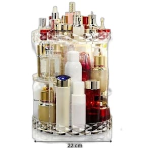 O Organizador de Maquiagem Acrílico é a solução perfeita para quem busca praticidade e organização em seu espaço de beleza. Com um design moderno e elegante, este organizador não só otimiza o armazenamento dos seus cosméticos, mas também acrescenta um toque sofisticado à sua decoração. Possui uma bandeja com quatro divisórias ideais para lápis de olho, rímel, batons e outros itens essenciais. A montagem e desmontagem são simples, e a base giratória de 360 permite acesso rápido e fácil aos seus produtos.