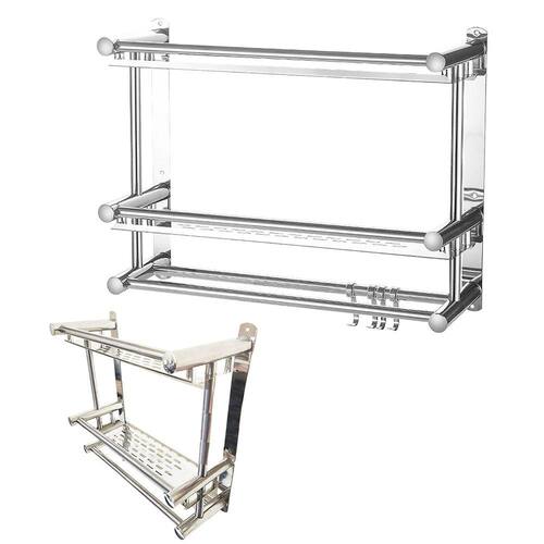 Organize a sua casa com esse organizador multifuncional, ele possui duas prateleiras, quatro ganchos, perfeito para colocar toalhas, panos de prato ou utensilios de cozinha.
