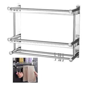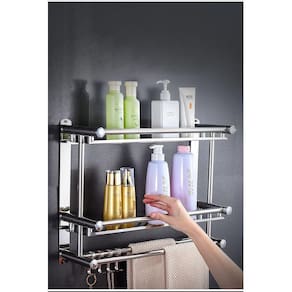 Organize a sua casa com esse organizador multifuncional, ele possui duas prateleiras, quatro ganchos, perfeito para colocar toalhas, panos de prato ou utensilios de cozinha.