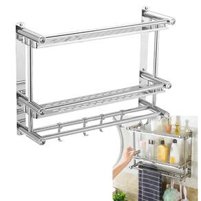 Organize a sua casa com esse organizador multifuncional, ele possui duas prateleiras, quatro ganchos, perfeito para colocar toalhas, panos de prato ou utensilios de cozinha.