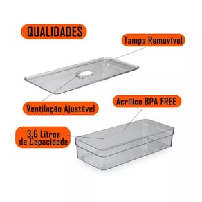 o organizador geladeira elegance 3,6 l com tampa plastutti é a solução perfeita para manter sua geladeira organizada e seus alimentos frescos por mais tempo. Com um design elegante e funcional, este organizador em acrílico transparente resistente é ideal para armazenar frutas, legumes, laticínios e muito mais com suas dimensões compactas ele se encaixa perfeitamente em qualquer espaço da sua geladeira. Além disso, suporta um peso máximo de 2.1 g, garantindo durabilidade e resistência. Mantenha sua geladeira sempre organizada com o organizador geladeira elegance plastutti.