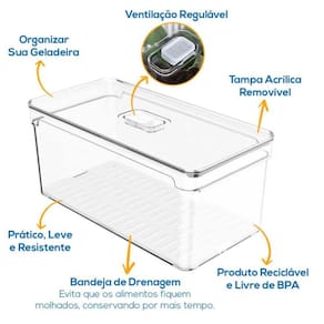 o organizador geladeira elegance 3,8 l com cesta plastutti é a solução perfeita para manter sua geladeira organizada e seus alimentos frescos por mais tempo. Com um design elegante e funcional, este organizador em acrílico transparente resistente é ideal para armazenar frutas, legumes, laticínios e muito mais