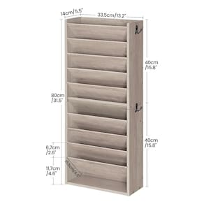 - Organizador de arquivos de parede multifuncional: Feito com um design vertical de 10 camadas de 33,2 cm C x 13,5 cm L x 80 cm A, este classificador de arquivos pode ficar graciosamente em sua mesa ou ser montado sem esforço na parede com seus orifícios traseiros, maximizando sua área enquanto melhora sua facilidade organizacional