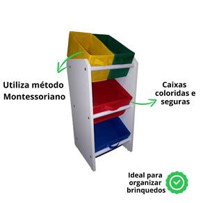 Com 4 caixas organizadoras em cores vibrantes, ele oferece uma maneira divertida e funcional de manter o ambiente organizado. Seguindo o método Montessoriano, o organizador ajuda a criança a aprender sobre organização e disciplina de forma lúdica e prática.