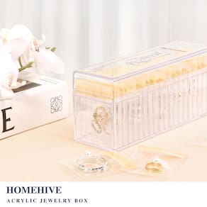 Esta caixa organizadora de joias é feita de acrílico durável de alta qualidade, com um design de tampa transparente que exibe elegantemente suas joias, mantendo-as livres de poeira e à prova d'água. Inclui 20 bolsas de joias de PVC portáteis feitas de material espesso e transparente que resiste a rasgos e evita que as joias oxidem, garantindo um armazenamento seguro e conveniente (lembrete: o tamanho da bolsa de joias é de 8 x 6,3 cm, verifique se cabe nas suas joias antes de comprar). Com 20 compartimentos fixos, este porta-joias mantém suas peças organizadas e facilmente acessíveis, eliminando colares emaranhados e brincos extraviados. Seu design compacto mede 21,3 x 7,1 x 9,7 cm, facilitando o armazenamento em gavetas ou levar com as bolsas de joias de PVC, o que o torna um item essencial para viagens. Seja para sua mãe, esposa, namorada, filha, amiga ou colega, este organizador de joias é um presente atencioso e prático, combinando elegância e funcionalidade para qualquer mulher especial em sua vida. - ? Construção acrílica durável: feito de acrílico resistente de alta qualidade, nosso organizador de joias transparente é feito para durar, oferecendo proteção confiável para suas joias preciosas. Seu design transparente com tampa não apenas mostra suas joias, mas também as mantém livres de poeira e à prova d'água. - ? 20 bolsas portáteis de PVC: as 20 bolsas de joias portáteis de PVC incluídas são projetadas para durabilidade e conveniência. Seu material espesso e transparente resiste a rasgos e sela com segurança para evitar que as joias oxidem. (Lembrete: o tamanho da bolsa de joias é de 8 x 6 cm. Para o seu prazer de compras, verifique se o tamanho de suas joias é adequado.) - ?Armazenamento seguro e organizado: com 20 compartimentos fixos, nosso organizador de porta-joias garante que suas joias permaneçam organizadas e facilmente acessíveis. Chega de colares emaranhados ou brincos extraviados; tudo tem o seu lugar. - ? Compacta e adequada para viagens: medindo 21,3 x 7 x 9,7 cm, nossa caixa organizadora de joias cabe perfeitamente em gavetas ou pode ser usada para armazenar suas peças favoritas na bolsa de joias de PVC, pronta para pegar e levar. É um item essencial de viagem para manter suas joias seguras e organizadas em movimento. - ?Presente perfeito para ela: seja para sua mãe, esposa, namorada, filha, amiga ou colega, nosso organizador de brincos é um presente atencioso e prático. Seu design elegante e características funcionais o tornam a escolha ideal para qualquer mulher especial em sua vida.