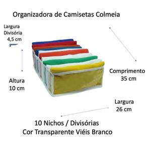 Organizador de Camiseta Guarda Roupa Colmeia Grande 2 unidades Marca: VB Home Material: PVC Transparente e Viés TNT Branco Dimensões: C x L x A 35 x 25 x 10 cm Capacidade: 10 Nichos cada Cor: Transparente e Viés TNT Branco Quantidade: 2 unidades Limpeza: com pano úmido com ou sem álcool . Não utilizar produtos químicos.