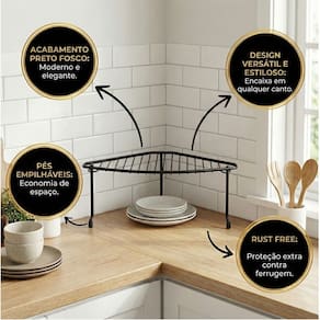 Organizador De Canto Para Armário Suporte Porta Pratos e Utensílios Cozinha Preto Fosco - 1083 Future