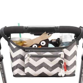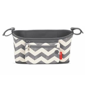 Organizador de carrinho skip hop chevron branco e cinza O organizador para carrinho de bebê da skip hop possui espaço para bebidas e outros itens com segurança, enquanto fornece acesso fácil aos seus itens mais importantes. Adaptando-se à maioria das barras e alças de carrinhos, o organizador inclui uma bolsinha frontal removível para pequenos objetos com um porta fones de ouvidos para celular.