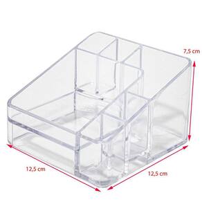 Detalhes do produto: - Este organizador de maquiagem é ideal para manter as maquiagens organizadas ou acessórios, além de ocupar pouco espaço, é de fácil manuseio; - Feito de acrílico, possui 6 divisórias.