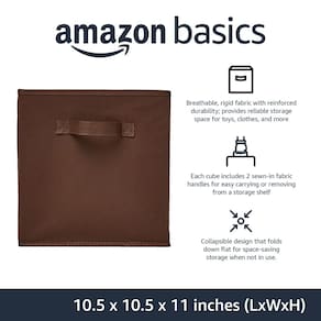 Organizador de cubos de armazenamento em tecido dobrável Amazon Basics com alças, 10,5 “x 10,5” x 11", marrom — pacote com 6