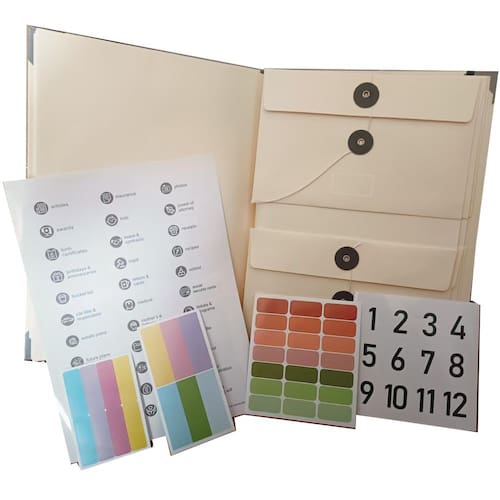 Por que escolher o fichário organizador AIRKING Life com etiquetas? Mantenha-se organizado com nosso organizador de documentos durável e versátil: projetado com o organizador moderno em mente, o organizador de documentos combina durabilidade, funcionalidade e design cuidadoso para agilizar suas necessidades de armazenamento de documentos. Feito de papel inquebrável e resistente ao desgaste, este organizador é leve e resistente, construído para lidar com o uso diário sem rasgar ou deformar. Sua construção robusta o torna uma escolha confiável para documentos de longo prazo. agement. No caso A organização i go missing binder oferece um lugar para tudo, com 12 bolsos expansíveis de vários tamanhos, projetados para guardar tudo com segurança, desde papéis A4 de 21 cm x 28 cm até itens menores, como passaportes, fotos e cartões de presente. Se você precisa de uma solução abrangente para documentos importantes ou um local seguro para lembranças pessoais, este organizador tem o que você precisa. Acesso sem esforço com abas desenhadas à mão: encontre seus documentos necessários be easy, and that's por que nosso organizador de fólio vem com abas desenhadas à mão para simplificar o gerenciamento de arquivos. Localize rapidamente o que você precisa ou determine o local certo para novos itens, economizando tempo e eliminando a frustração de papéis perdidos. Perfeito para momentos importantes da vida: este fichário de documentos multifuncional pode armazenar com segurança certidões de nascimento, planos patrimoniais, cartões de previdência social, registros médicos, formulários fiscais e muito mais, tornando-o ideal para itens essenciais life planning.It's versátil o suficiente para usar como planejador familiar, um local seguro para registros médicos ou até mesmo como organizador de documentos de viagem. Fichário organizador de vida com etiquetas – Presente atencioso e prático para qualquer ocasião: mais do que apenas um porta-documentos, nosso organizador de documentos the life é uma escolha atenciosa para familiares, amigos ou qualquer pessoa que queira trazer ordem à sua vida. De papéis escolares e correspondência especial a registros fiscais importantes, este organizador de fichários com etiquetas é o melhor para aqueles que valorizam a funcionalidade Organização - Diferentes designs: nosso importante fichário organizador de documentos vem com 12 bolsos expansíveis de tamanhos diferentes, envelopes maiores que podem conter papel A4 de 21 x 28 cm, envelopes menores para armazenar passaportes, fotos, cartões de presente ou outros itens menores, perfeitos para organizar documentos em qualquer ambiente - Material do produto: o organizador de documentos é feito de papel inquebrável e resistente ao desgaste, tornando-o um organizador de arquivos que não rasga ou deforma. As bordas aprimoradas e o papel resistente tornam o fichário mais leve e resistente, tornando-o uma escolha sustentável para organização de documentos. As encadernações da pasta mantêm os arquivos firmemente no lugar para evitar danos - Fácil de organizar: o fólio organizador de documentos é um diretório abrangente com abas desenhadas à mão para garantir o gerenciamento de arquivos, encontre rapidamente onde você o armazenou ou onde colocá-lo, economizando muito tempo e o aborrecimento de não conseguir encontrá-los - Amplo uso: o organizador de documentos de livro de vida combina praticidade com funcionalidade, tornando-o uma escolha cuidadosa para qualquer ocasião. Serve como um organizador completo para planejadores familiares, documentos escolares, correspondência especial, registros médicos e fiscais, documentos de viagem e muito mais - Versátil: o fichário de vida organizador de documentos pode conter certidões de nascimento, planos patrimoniais, cartões de segurança social, passaportes, fotografias importantes, cartas, certificados, formulários fiscais, senhas, documentos médicos, contratos e muito mais para atender às suas necessidades