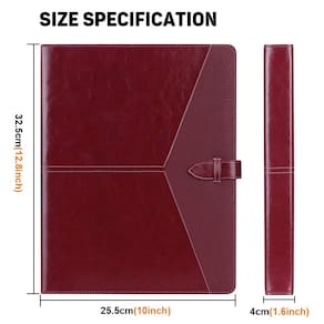Organizador de fichário de 3 anéis Toplive Padfolio, pasta de portfólio de negócios para mulheres, portfólio de portfólio de couro PU tamanho A4/carta para entrevista e apresentação em conferência, vinho tinto