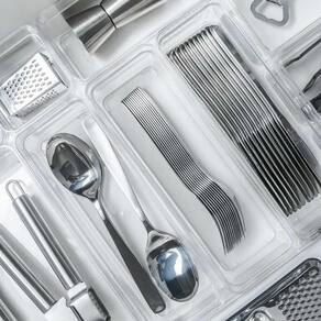 A linha foi pensada para permitir diversas composições e proporcionar máximo aproveitamento de espaço nos ambientes, por isso, traz 7 opções de organizadores modulares que funcionam em diferentes tipos de gavetas. Combine, encaixe e enxergue facilmente o conteúdo, mantendo tudo em ordem.