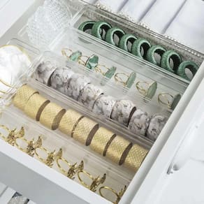 A linha foi pensada para permitir diversas composições e proporcionar máximo aproveitamento de espaço nos ambientes, por isso, traz 7 opções de organizadores modulares que funcionam em diferentes tipos de gavetas.