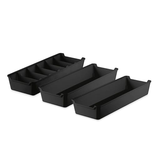 Contêm: 1 Organizador com Divisória 2 Organizadores de Gaveta Dimensões: 34,5 x 12,5 x 5,5 cm Casacha é uma loja especializada em utensílios de cozinha e acessórios de organização.