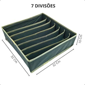 Confira este organizador de gavetas, projetado para proporcionar praticidade e organização ao seu ambiente. Com dimensões de 32 cm x 32 cm x 10 cm, cada organizador é perfeito para otimizar o espaço em seus armários, gavetas e guarda-roupas, mantendo seus pertences sempre organizados e de fácil acesso.   Este organizador de gavetas é ideal para aqueles que valorizam uma vida organizada e sem complicações. Fabricado em material de alta qualidade, ele é leve, resistente e extremamente durável. Sua estrutura em poliéster e nylon garante que o produto seja seguro, não tóxico, inodoro e, acima de tudo, duradouro. Com sua construção robusta, você pode ter certeza de que seus itens estarão sempre protegidos e em ordem.   Um dos grandes destaques deste organizador é a sua capacidade de ser dobrável, o que facilita o armazenamento quando não está em uso. Isso significa que você pode mantê-lo guardado sem ocupar muito espaço e utilizá-lo somente quando necessário. Além disso, sua cor neutra se adapta a qualquer estilo de decoração, tornando-o um acessório discreto, porém indispensável.   A qualidade é uma das principais características deste organizador. Os materiais utilizados na sua fabricação foram cuidadosamente selecionados para proporcionar um produto final que não apenas cumpre sua função, mas também resiste ao desgaste do tempo. O acabamento das divisórias é impecável, garantindo que mesmo os itens mais delicados, como meias e lingerie, possam ser armazenados sem risco de danos.   Este organizador é extremamente versátil. Com suas 6 divisórias, ele é perfeito para armazenar diversos tipos de itens, como cachecóis, sutiãs, meias, gravatas, luvas e muito mais. Sua aplicação não se limita apenas ao guarda-roupa; você também pode utilizá-lo em outros espaços da casa, como no escritório para organizar material de papelaria, ou até mesmo no banheiro para manter pequenos itens de higiene pessoal em ordem.   Se você busca praticidade, organização e um toque de elegância em seu dia a dia, este organizador de gaveta é a solução perfeita. A aquisição deste produto vai transformar a maneira como você organiza seus pertences, tornando sua rotina mais eficiente e seu ambiente mais harmonioso. Não perca a oportunidade de adquirir este conjunto e desfrute de todos os benefícios que ele pode proporcionar!