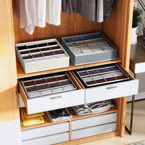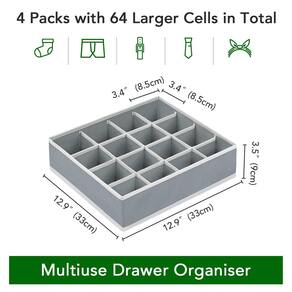 Quantas vezes você sente que sua roupa íntima, meia e gaveta de cômoda estão bagunçadas, mas tem menos tempo para arrumá-la? Você sente que tem mais acessórios de cabelo do que pode armazenar? Por que não organizar suas pequenas joias, meias e outros pequenos gadgets de uma só vez? O organizador de gavetas Joyoldelf é a excelente solução para organizar gavetas para você, ele pode garantir que todos os seus itens favoritos fiquem bem iguais. e maximiza o espaço de armazenamento de meias, luvas, roupas íntimas e cachecóis, tornando-os limpos e arrumados, para que você não precise se preocupar com a bagunça deles a partir de agora! É a melhor maneira de organizar suas gavetas de armário e cômoda! É adequado para quarto e sala de estar, para tornar sua vida mais bem regulada, limpa e organizada. Fácil de usar, você não precisa dividir sua gaveta em muitas seções para armazenar seus itens, já que este organizador vem com 24 células, é ideal para ser utilizado como divisórias de gaveta para que você possa manter suas roupas organizadas de acordo com a forma como as usa. Não só pode ser utilizado para separar roupas íntimas e meias, mas também é ótimo para armazenar esmaltes, folhetos, pétalas, cartões, cotonete, creme para as mãos, grampo de cabelo, etc. Feito de tecido não tecido de alta qualidade com design dobrável, leve e muito durável, à prova de umidade, à prova de poeira, sensação de mão e elegante. Atende às suas diferentes necessidades de armazenamento Especificação: Material: não tecido de alta qualidade Cor: cinza Tamanho: 30 x 30 x 9 cm Você receberá 2 x 26 células Organizador de gaveta. - ?Multiuso?O organizador de 2 meias é um ótimo auxiliar de armazenamento para meias, gravatas, cintos, lenços, roupas íntimas, luvas, etc. Também pode ser utilizado como organizador de cômoda, perfeito para joias, esmalte, batom, outros pedaços, mantendo os itens organizados. Os organizadores de meias de 16 células são maiores do que os organizadores de meias de 24/30 células. - ?Design dobrável?Vem com zíper inferior, as divisórias de gaveta são dobráveis e podem ser abertas e dobradas em uma gaveta ou guarda-roupa quando não estiverem em uso. Em comparação com caixas de armazenamento de plástico, as caixas de armazenamento de tecido dobráveis economizam mais espaço e melhoram a utilização do espaço. - ?Economia de espaço?O organizador de gaveta de armário é adequado para sua gaveta, armário, cômoda, guarda-roupa e assim por diante. O organizador de gaveta de meias mantém suas coisas organizadas de forma eficaz, ajudando a se livrar da bagunça, dando mais espaço de armazenamento para você. - ?Requintado e prático?O divisor organizador de meia de 16 células tem 33 x 33 x 8,9 cm. Com cor e padrão simples, os organizadores de gaveta de roupas combinam bem com sua casa. E o design aberto faz com que você encontre os itens necessários facilmente. - ?Excelente material?Feito de material não tecido que não irrita e é inodoro. Com costuras delicadas, os organizadores de gaveta são duráveis o suficiente, resistentes a dobrar, deformar.