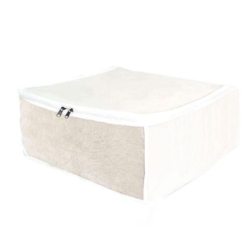 Indispensável para guardar de forma organizada edredon, roupas de lã, cachecol, luvas, gorros, etc, Guarde roupas de outra estação, vestido de noiva, roupas de bebê, travesseiros, etc. Acomoda facilmente embaixo da cama Confecionado em TNT e PVC, permite que as peças respirem, evitando mofo;