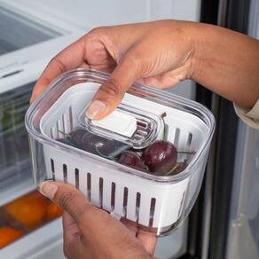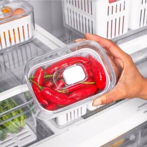 O Organizador de Geladeira Clear Fresh é o padrão de transparência na organização da sua geladeira. Empilhe, encaixe e enxergue facilmente os alimentos armazenados na geladeira, mantendo tudo em ordem. Seu design foi pensado para promover frescor prolongado para alimentos como: frutas, saladas, verduras e legumes mantendo uma rotina sem desperdícios. A tampa com ventilação ajustável mantém o nível de umidade ideal para cada tipo de alimento e a bandeja de drenagem evita que os alimentos fiquem molhados após a lavagem, ajudando a prevenir a deterioração precoce. Empilhável, permite diversas composições para proporcionar o máximo aproveitamento de espaço na geladeira. Super transparência, beleza e cuidado com o alimento são características da linha Clear Fresh, perfeitas para auxiliar na organização da sua geladeira e facilitar o seu dia a dia.