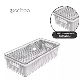 Organizador de geladeira médio frutas legumes com cesto ========== sobre o produto ========== O organizador de geladeira médio frutas legumes com cesto é a solução ideal para manter seus alimentos frescos e organizados por mais tempo. Com um design inteligente, ele conta com um cesto removível que permite melhor circulação de ar, evitando o acúmulo de umidade e prolongando a vida útil de frutas, legumes e verduras. Feito em plástico transparente de alta qualidade, ele facilita a visualização do conteúdo, ajudando a otimizar o espaço da geladeira e mantendo tudo ao seu alcance de forma prática e higiênica. Este organizador é essencial para quem busca eficiência na cozinha e quer garantir mais frescor aos alimentos. ========== especificações ========== Cesto removível, que facilita a ventilação e evita o acúmulo de umidade. Ideal para armazenar frutas, legumes e verduras com segurança. Material plástico transparente de alta durabilidade, fácil de limpar. Design grande e prático, otimiza o espaço interno da geladeira. ========== ficha técnica ========== Medidas: 30,5 x 15,5 x 8cm Material: poliestireno ps + polipropileno pp Marca: crippa : 3 meses Estamos online para quaisquer dúvidas, Agradecemos e aguardamos o seu pedido. P: o cesto é removível para facilitar a limpeza R: sim, o cesto é removível, facilitando a limpeza e ventilação dos alimentos. P: posso armazenar outros tipos de alimentos além de frutas e legumes R: sim, o organizador é versátil e pode ser para diversos alimentos, como queijos, frios e embutidos. P: é seguro para contato com alimentos R: sim, o material plástico é seguro para armazenar alimentos e fácil de higienizar. P: o produto é novo ou Marca: Não Informado