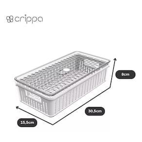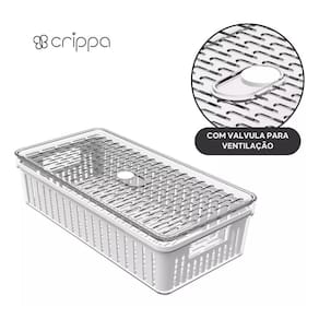 Organizador de geladeira médio frutas legumes com cesto ========== sobre o produto ========== O organizador de geladeira médio frutas legumes com cesto é a solução ideal para manter seus alimentos frescos e organizados por mais tempo. Com um design inteligente, ele conta com um cesto removível que permite melhor circulação de ar, evitando o acúmulo de umidade e prolongando a vida útil de frutas, legumes e verduras. Feito em plástico transparente de alta qualidade, ele facilita a visualização do conteúdo, ajudando a otimizar o espaço da geladeira e mantendo tudo ao seu alcance de forma prática e higiênica. Este organizador é essencial para quem busca eficiência na cozinha e quer garantir mais frescor aos alimentos. ========== especificações ========== Cesto removível, que facilita a ventilação e evita o acúmulo de umidade. Ideal para armazenar frutas, legumes e verduras com segurança. Material plástico transparente de alta durabilidade, fácil de limpar. Design grande e prático, otimiza o espaço interno da geladeira. ========== ficha técnica ========== Medidas: 30,5 x 15,5 x 8cm Material: poliestireno ps + polipropileno pp Marca: crippa : 3 meses Estamos online para quaisquer dúvidas, Agradecemos e aguardamos o seu pedido. P: o cesto é removível para facilitar a limpeza R: sim, o cesto é removível, facilitando a limpeza e ventilação dos alimentos. P: posso armazenar outros tipos de alimentos além de frutas e legumes R: sim, o organizador é versátil e pode ser para diversos alimentos, como queijos, frios e embutidos. P: é seguro para contato com alimentos R: sim, o material plástico é seguro para armazenar alimentos e fácil de higienizar. P: o produto é novo ou Marca: Não Informado Ean: 7899868312256