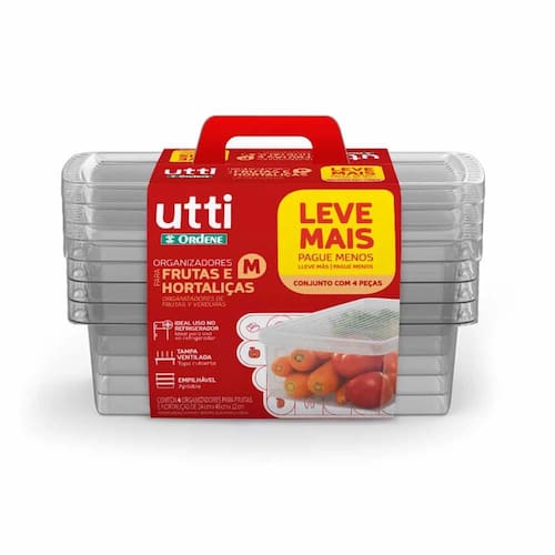 A Caixa Organizadora foi pensada para armazenar frutas e hortaliças em refrigerador. Ela possui saídas de ar em sua tampa, o que faz com que o ar circule, conservando assim o frescor dos alimentos por muito tempo. Com aparência translúcida, possibilita uma rápida identificação do conteúdo.