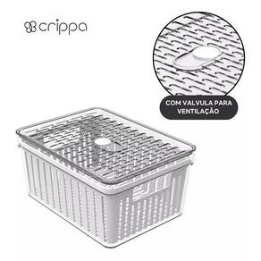 Organizador de geladeira pequenho frutas legumes com cesto ========== sobre o produto ========== O organizador de geladeira pequeno frutas legumes com cesto é a solução ideal para manter seus alimentos frescos e organizados por mais tempo. Com um design inteligente, ele conta com um cesto removível que permite melhor circulação de ar, evitando o acúmulo de umidade e prolongando a vida útil de frutas, legumes e verduras. Feito em plástico transparente de alta qualidade, ele facilita a visualização do conteúdo, ajudando a otimizar o espaço da geladeira e mantendo tudo ao seu alcance de forma prática e higiênica. Este organizador é essencial para quem busca eficiência na cozinha e quer garantir mais frescor aos alimentos. ========== especificações ========== Cesto removível, que facilita a ventilação e evita o acúmulo de umidade. Ideal para armazenar frutas, legumes e verduras com segurança. Material plástico transparente de alta durabilidade, fácil de limpar. Design compacto e prático, otimiza o espaço interno da geladeira. ========== ficha técnica ========== Medidas: 20,5 x 15,5 x 10cm Material: poliestireno ps + polipropileno pp Marca: crippa : 3 meses Estamos online para quaisquer dúvidas, Agradecemos e aguardamos o seu pedido. P: o cesto é removível para facilitar a limpeza R: sim, o cesto é removível, facilitando a limpeza e ventilação dos alimentos. P: posso armazenar outros tipos de alimentos além de frutas e legumes R: sim, o organizador é versátil e pode ser para diversos alimentos, como queijos, frios e embutidos. P: é seguro para contato com alimentos R: sim, o material plástico é seguro para armazenar alimentos e fácil de higienizar. P: o produto é novo ou