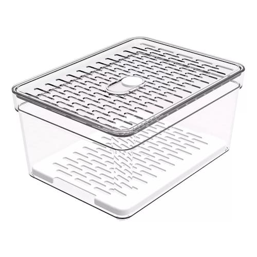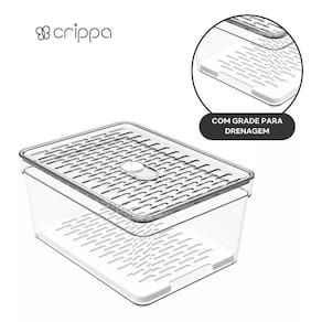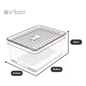 Organizador de geladeira pequenho frutas legumes com grade ========== sobre o produto ========== O organizador de geladeira pequeno com grade é a solução ideal para manter seus alimentos frescos e organizados por mais tempo. Com um design inteligente, ele conta com uma grade removível que permite melhor circulação de ar, evitando o acúmulo de umidade e prolongando a vida útil de frutas, legumes e verduras. Feito em plástico transparente de alta qualidade, ele facilita a visualização do conteúdo, ajudando a otimizar o espaço da geladeira e mantendo tudo ao seu alcance de forma prática e higiênica. Este organizador é essencial para quem busca eficiência na cozinha e quer garantir mais frescor aos alimentos. ========== especificações ========== Grade removível, que facilita a ventilação e evita o acúmulo de umidade. Ideal para armazenar frutas, legumes e verduras com segurança. Material plástico transparente de alta durabilidade, fácil de limpar. Design compacto e prático, otimiza o espaço interno da geladeira. ========== ficha técnica ========== Medidas: 20,5 x 15,5 x 10cm Material: poliestireno ps + polipropileno pp Marca: crippa : 3 meses Estamos online para quaisquer dúvidas, Agradecemos e aguardamos o seu pedido. P: a grade é removível para facilitar a limpeza R: sim, o cesto é removível, facilitando a limpeza e ventilação dos alimentos. P: posso armazenar outros tipos de alimentos além de frutas e legumes R: sim, o organizador é versátil e pode ser para diversos alimentos, como queijos, frios e embutidos. P: é seguro para contato com alimentos R: sim, o material plástico é seguro para armazenar alimentos e fácil de higienizar. P: o produto é novo ou