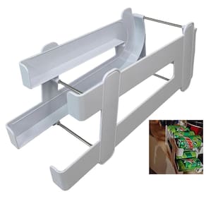 O organizador comporta até 9 latas padrão (350ml), proporcionando um armazenamento adequado para quem quer reduzir a desordem na geladeira. Conforme você retira as latas do andar inferior, as que estão no andar superior rolam para baixo.