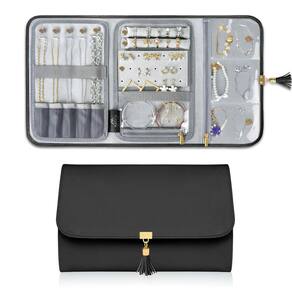 Você ainda está preocupado em como manter suas joias? Use um organizador de joias para resolver facilmente seus problemas. Este estojo de transporte de joias manterá suas joias organizadas e seguras de cair. Coloque esta bolsa de joias decorativa na cômoda do seu quarto e eleve seu quarto em segundos! 5 compartimentos diferentes são projetados de acordo com suas necessidades diárias. A caixa de joias elegante comporta seus colares, anéis, brincos, tiaras, pulseiras, broches, relógios e muito mais, garantindo que você sempre encontre seus itens rapidamente Tamanho espaçoso. Alça com fivela para colar – 5 tiras com 5 bolsas elásticas abaixo para guardar colares. A fita mágica prende colares ou correntes em um lugar e desembaraça Anel longo com fivela – 2 pulseiras podem conter dezenas de anéis Painel de brincos – 1 painel total com 23 furos para organizar brincos Bolso transparente com zíper – 1 bolso espaçoso para guardar pulseiras ou outros objetos de valor. pequenas bolsas visíveis – lugar extra para guardar seus pequenos itens Informações do produto: Material externo: couro PU, resistente à água e resistente Material interno: poliéster, macio ao toque e protege suas joias de danos ou abrasão Cor: Preto Dimensão dobrada: 24 cm C x 15 cm L x 3 cm A, abra este armazenamento de joias com fecho magnético para acesso rápido aos seus acessórios Dimensão desdobrada: 40 cm C x 24 cm L Excelente opção de presente. Um presente perfeito para mulheres no aniversário, dia das mães, Natal, casamento, aniversário e muito mais Bolsas de presente de Natal, presentes para mulheres, presentes para irmã, caixas de presente de joias, presentes para ela, presentes de Natal para mulheres, ideias de presentes para familiares, presentes para melhores amigas, organizador de bolsas de presentes, presentes para mulheres de trabalho, presentes para mulheres, presentes para mulheres, presentes para mulheres, presentes para mulheres, presentes para mulheres, bolsas de joias, presentes para namorada, ideias de presentes de viagem, bolsa de presente de joias - Capacidade espaçosa: Tamanho dobrado: 24 cm C x 15 cm L. Tamanho desdobrado: 40 cm C x 24 cm L. Peso: 300 g. Este organizador de joias pode ser facilmente colocado em uma bolsa, mochila, bagagem ou mala. 5 tipos de compartimentos – 2 anéis com fivela + 1 painel de brincos + 5 tiras finas + 3 bolsos pequenos transparentes visíveis + 1 bolsa com zíper. Os bolsos pequenos ficarão um pouco apertados. Basta colocar suas joias diferentes em seus compartimentos separados - Design protetor: o material externo é feito de couro PU resistente à água que pode ser limpo com tecido facilmente. O material de poliéster macio pode proteger bem as joias, macio ao toque e resistente a arranhões. O fecho magnético da bolsa de joias permite que você abra facilmente e economize tempo. O design exclusivo de borla pequena torna a bolsa fofa - Nunca perca suas joias: o fecho de gancho e laço do compartimento do colar é projetado para proteger seus colares para evitar emaranhados, e a alça elástica pode fixar bem os brincos longos. Bolsos transparentes de diferentes tamanhos permitem que você sempre encontre as joias que deseja. Perfeito para armazenar e organizar suas joias favoritas onde quer que você vá - Companheiro perfeito para a vida: este organizador de joias de viagem não é apenas uma necessidade conveniente de viagem para você usar no armazenamento de joias em casa, mas também deve ter adequado para viagens de negócios, viagens internacionais, sair para festas, cruzeiros de férias e outras atividades ao ar livre. Também pode ser usada como uma bolsa feminina moderna para decoração - Bons presentes de Natal: esta bolsa de joias pode ser usada para armazenar colares, brincos, anéis, relógios dobráveis, pulseiras, laços de cabelo. (Observação: não é adequado para bijuterias grandes) Uma ideia perfeita de presente de viagem para esposa, namorada, mãe ou melhores amigas no Natal, Ano Novo, aniversário, casamento, aniversário