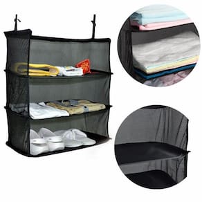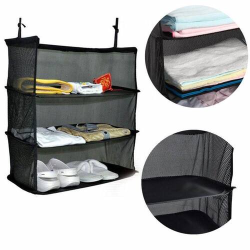 Organizador Suspenso Portátil com 3 Camadas – Praticidade para Viagens e Dia a DiaOtimize o espaço na sua bagagem e mantenha suas roupas organizadas com este Sistema de Suspensão de Bagagem Portátil. Ideal para viagens, academias ou o uso diário, ele combina praticidade, durabilidade e economia de espaço. Basta carregar as roupas em suas 3 camadas, dobrar e guardar na mala. Ao chegar ao destino, pendure diretamente no cabideiro para ter tudo à mão, sem precisar descompactar.Principais Vantagens:- Alta Durabilidade: Com um gancho grosso e resistente, suporta um grande volume de roupas sem deformar.- Ótima Ventilação: Material vazado em malha que permite circulação de ar, mantendo suas roupas arejadas.- Design à Prova d’Água: Fácil de limpar, protege seus itens contra umidade e respingos.- Economia de Espaço: Reduz até 30% do volume ocupado em sua bagagem.- Fácil Transporte: Totalmente dobrável e compacto, ideal para levar na mala ou mochila.Especificações Técnicas:Material: PoliesterDimensões: Altura: 45 cm | Largura: 46 cm | Comprimento: 27 cm.Prateleiras: 3 camadas dobráveis para fácil organização.Conteúdo da Embalagem: 1 Organizador Suspenso Cabideiro Portátil.Por Que Adquirir Este Organizador Suspenso?Simplifique sua rotina e evite o caos na bagagem. Com este organizador, você pode economizar espaço, proteger suas roupas e ter uma solução prática para acessar seus itens rapidamente. Perfeito para quem busca funcionalidade e estilo em qualquer ocasião!Organize sua bagagem com eficiência e leve mais praticidade para suas viagens! Garanta já o seu Organizador Suspenso Portátil! Marca: Guimp