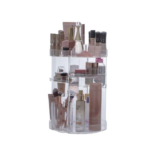 Este item é fácil de montar e desmontar. Com a sua constante base rotativa giratória 360°, você pode começar imediatamente o acesso a seus cosméticos pela rotação do organizador. Duráveis bandejas resistentes são fortes o suficiente para suportar os produtos pesados. Com prateleiras ajustáveis.