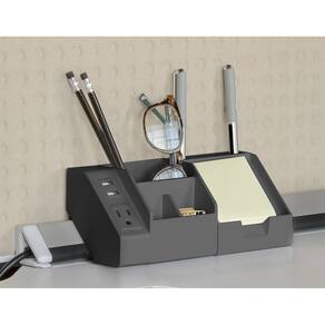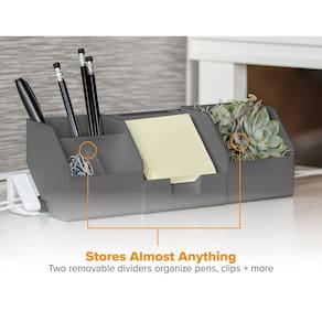 Porta-lápis amplo Bostitch Office, organizador de mesa, tampa e divisórias removíveis, cinza (cinza KT-WCUP)