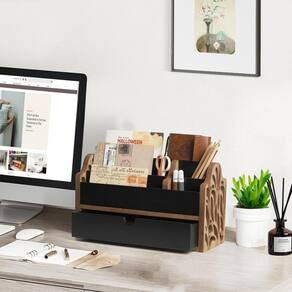 Transforme seu espaço de trabalho do caos desordenado em eficiência organizada com este versátil organizador de mesa. Perfeito para escritórios domésticos, espaços corporativos ou mesas de estudantes, ajuda a manter seus itens essenciais bem organizados e com fácil alcance. Vários compartimentos oferecem espaços dedicados para canetas, lápis, notas adesivas, clipes de papel e outros acessórios de mesa. O design atencioso maximiza o espaço vertical enquanto mantém uma pegada compacta em sua mesa. Se você estiver gerenciando um fluxo de trabalho ocupado ou simplesmente apreciando um espaço de trabalho organizado, este organizador de mesa ajuda a simplificar sua rotina diária, garantindo que tudo tenha seu lugar. A estrutura robusta garante um desempenho duradouro, enquanto sua aparência profissional complementa qualquer configuração de mesa. Mantenha seu espaço de trabalho livre de bagunça e aumente sua produtividade com esta solução prática de armazenamento de mesa.