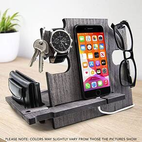 Esta docking station é uma ótima solução para manter todos os seus itens diários organizados e fáceis de encontrar. Ele foi projetado para manter seu smartphone, seu tablet, chaves, relógio, óculos, carteira. Tudo está organizado em uma série de espaços especificamente projetados.