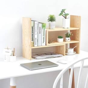 Organizador De Mesa Escritório Sala Natural Em Madeira