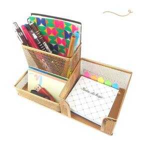 Com o Kit Organizador Para Escritório Com 3 Partições Dourado Ouro, você terá suas canetas, lápis, borracha, clips e bloco de notas sempre ao seu alcance, facilitando o seu trabalho diário. Sua mesa ficará mais organizada e você terá mais praticidade na hora de encontrar o que precisa.