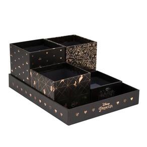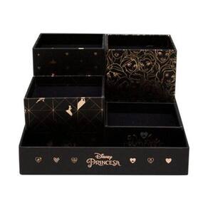 O organizador de mesa da princesa disney é perfeito para deixar tudo organizado no seu cantinho, seja ele de estudos, de trabalho ou de leitura e reflexão pessoal. Com ele você organiza pequenos objetos que ficam perdidos ou espalhados pela mesa, todo material de escrita (canetas, lápis, marca textos e afins), bloquinhos de rascunho para anotações, clips, borrachas e outros itens, até como suporte para o celular dá para usar. Além disso, enfeita sua mesa com muito charme e estilo, são 4 caixinhas que se encaixam e desencaixam perfeitamente em sua base para você montar e usar do seu jeito. Todas com forração interna e estampas variadas da licença que cada dia mais tem representado a diversidade da mulher. Descrição do organizador de mesa código: 3463 categoria: organizador de mesa cor: estampado formato: 23,7 cm x 18,2 cm x 3,4 cm quantidade: unit rio composição: papel cartonado detalhes: com 4 caixinhas avulsas para montar dentro da bandeja, acabamento em verniz localizado e hot stamping rosé gold.