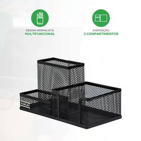 - Modelo: Organizador de Mesa - Material: Metal aramado - Cor: Preto - Compartimentos: 3