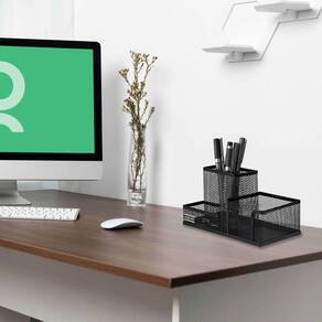 Este organizador multifuncional possui três compartimentos, permitindo que você mantenha canetas, lápis, tesouras, clipes, notas adesivas, cartões de visita e outros pequenos itens sempre à mão.