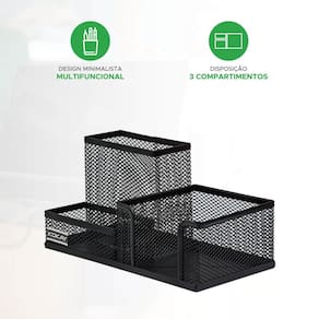 - Modelo: Organizador de Mesa - Material: Metal aramado - Cor: Preto - Compartimentos: 3
