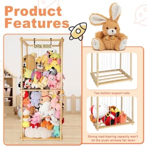 Prateleira organizadora de pelúcia de 63 polegadas para crianças, armazenamento de pelúcia de madeira com cordão elástico para presente de aniversário para bebês e crianças pequenas, canto com decoração de sala de jogos — Grande capacidade: comporta uma tonelada de bichos de pelúcia! Com dimensões de 18,5 “P x 25,59" L x 62,99" A, o depósito do zoológico de bichos de pelúcia pode acomodar mais de 150 brinquedos de pelúcia com facilidade; chega de tropeçar em brinquedos e pisar em peluches - Leve e conveniência: o zoológico de bichos de pelúcia é feito de madeira de pinho de alta qualidade e corda elástica branca, o material de madeira de pinho tem características de proteção ambiental e leveza, pode fazer você se mover facilmente; o a lacuna entre a corda elástica facilita o acesso ao seu bicho de pelúcia favorito - Fácil de instalar: o suporte de bichos de pelúcia para quarto de crianças vem com detalhes instruções de instalação, sem necessidade de acessórios extras. O suporte de bichos de pelúcia para quarto de crianças vem com instruções de instalação detalhadas, sem necessidade de acessórios extras. - Adequado para muitas ocasiões: o armazenamento de bichos de pelúcia pode armazenar bichos de pelúcia, roupas, bolas de couro e assim por diante. Você também pode colocar a prateleira no quarto das crianças, na academia, no quarto, no jardim de infância, na área de decoração da sala de jogos. - Segurança: existem almofadas antiderrapantes na parte inferior do rack de armazenamento, design em arco na esquina e a moagem manual da superfície da madeira pode evitar ferimentos por colisão