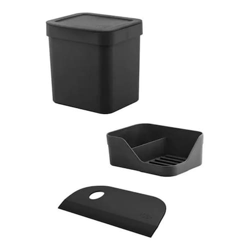 Organizador De Pia E Cozinha Duplo + Rodo + Lixeira 4,7l Cor: Preto F6105